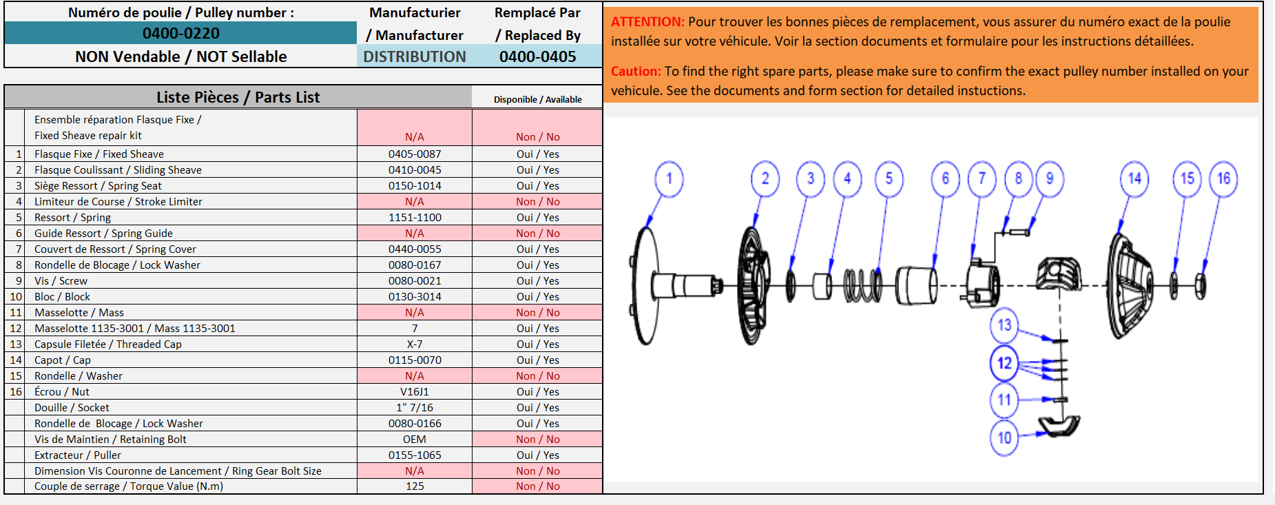 REMARQUE: Cette poulie accepte la couronne de lancement